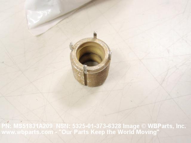 5325-01-373-6328 A cylindrical item which may have wrenching and/or driving facilities and/or shoulders. It is designed to be inserted in a drilled, tapped or a pretapped hole, or molded or pressed into soft material to reduce the size of a tapped hole; to provide threads; to add strength, and/or to prevent stripping. It is one of the following: (1) a one-piece, flanged or unflanged, internally threaded item which may have external threads, and/or serrations around the periphery of the collar, designed to engage a serrated lock ring which is not included with the item; (2) a one-piece precision coiled wire; (3) a two-piece item consisting of an internally threaded cylinder and a mating externally threaded part; or (4) a one-piece internally threaded item whose outside diameter is tapered and/or knurled and/or with fin(s). The internal thread of the item may have a locking feature. Excludes items having a sleeve on on its under portion which can be clinched or crimped. Excludes BUSHING,MACHINE THREAD; NUT,PLAIN,KNURLED; NUT,PLAIN,ROUND; NUT,PLAIN,CLINCH and NUT,SELF-LOCKING,CLINCH. See also NUT,PLAIN,PLATE