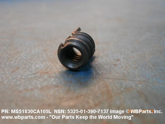 5325-01-390-7137 A cylindrical item which may have wrenching and/or driving facilities and/or shoulders. It is designed to be inserted in a drilled, tapped or a pretapped hole, or molded or pressed into soft material to reduce the size of a tapped hole; to provide threads; to add strength, and/or to prevent stripping. It is one of the following: (1) a one-piece, flanged or unflanged, internally threaded item which may have external threads, and/or serrations around the periphery of the collar, designed to engage a serrated lock ring which is not included with the item; (2) a one-piece precision coiled wire; (3) a two-piece item consisting of an internally threaded cylinder and a mating externally threaded part; or (4) a one-piece internally threaded item whose outside diameter is tapered and/or knurled and/or with fin(s). The internal thread of the item may have a locking feature. Excludes items having a sleeve on on its under portion which can be clinched or crimped. Excludes BUSHING,MACHINE THREAD; NUT,PLAIN,KNURLED; NUT,PLAIN,ROUND; NUT,PLAIN,CLINCH and NUT,SELF-LOCKING,CLINCH. See also NUT,PLAIN,PLATE