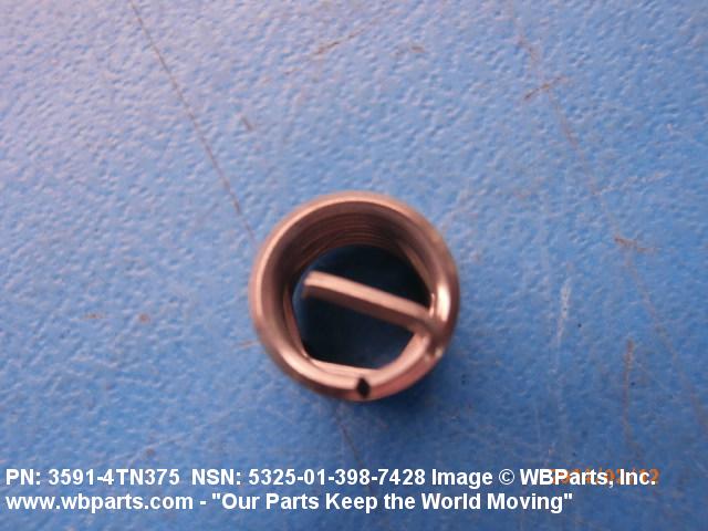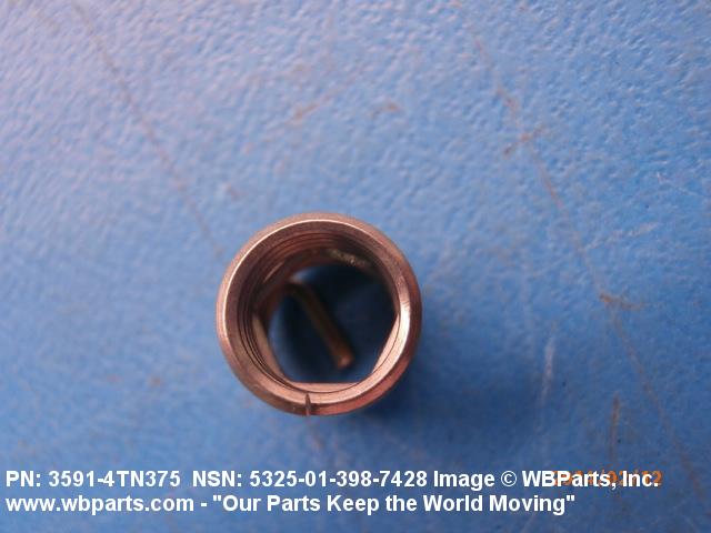 5325-01-398-7428 A cylindrical item which may have wrenching and/or driving facilities and/or shoulders. It is designed to be inserted in a drilled, tapped or a pretapped hole, or molded or pressed into soft material to reduce the size of a tapped hole; to provide threads; to add strength, and/or to prevent stripping. It is one of the following: (1) a one-piece, flanged or unflanged, internally threaded item which may have external threads, and/or serrations around the periphery of the collar, designed to engage a serrated lock ring which is not included with the item; (2) a one-piece precision coiled wire; (3) a two-piece item consisting of an internally threaded cylinder and a mating externally threaded part; or (4) a one-piece internally threaded item whose outside diameter is tapered and/or knurled and/or with fin(s). The internal thread of the item may have a locking feature. Excludes items having a sleeve on on its under portion which can be clinched or crimped. Excludes BUSHING,MACHINE THREAD; NUT,PLAIN,KNURLED; NUT,PLAIN,ROUND; NUT,PLAIN,CLINCH and NUT,SELF-LOCKING,CLINCH. See also NUT,PLAIN,PLATE