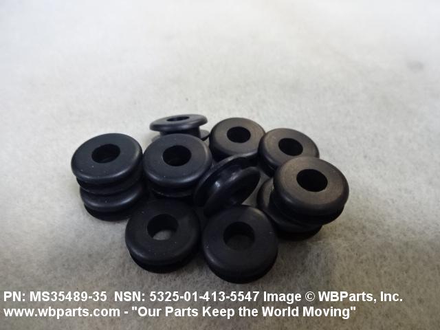 5325-01-413-5547 An item of any peripheral shape having flanges or groove(s) on its outer perimeter to provide a self-retaining characteristic when inserted in a hole, clamp, or the like. Designed for the purpose of protecting and/or insulating wires, cables and other items passing through it. Excludes BUSHING, NONMETALLIC; BUMPER; and INSULATOR BUSHING.