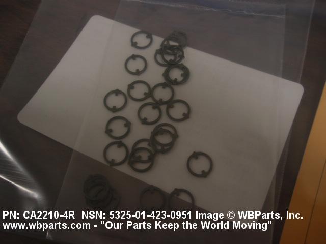 5325-01-423-0951 A resilient metal item, circular or nearly circular, which is designed to be inserted into an internal or external groove and retained by its own spring action, or it may have external prongs or projections designed to be inserted into a hole and retained by spring action of the prongs which grip by imbedding into the material. For items having internal prongs which perform the same function, see PUSH ON NUT. It is used to keep and/or lock a part(s) in position, as a ball bearing on a shaft or in a housing. See also CLIP, RETAINING and PIN, LOCK. Excludes RING, CONNECTING, ROUND.