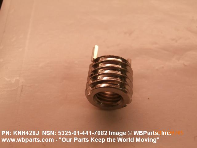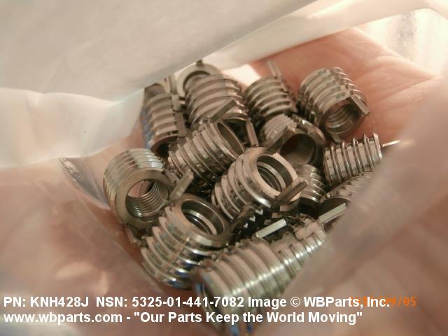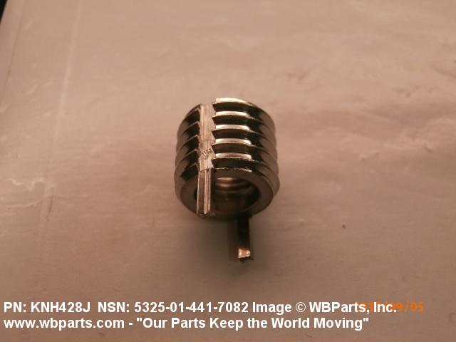 5325-01-441-7082 A cylindrical item which may have wrenching and/or driving facilities and/or shoulders. It is designed to be inserted in a drilled, tapped or a pretapped hole, or molded or pressed into soft material to reduce the size of a tapped hole; to provide threads; to add strength, and/or to prevent stripping. It is one of the following: (1) a one-piece, flanged or unflanged, internally threaded item which may have external threads, and/or serrations around the periphery of the collar, designed to engage a serrated lock ring which is not included with the item; (2) a one-piece precision coiled wire; (3) a two-piece item consisting of an internally threaded cylinder and a mating externally threaded part; or (4) a one-piece internally threaded item whose outside diameter is tapered and/or knurled and/or with fin(s). The internal thread of the item may have a locking feature. Excludes items having a sleeve on on its under portion which can be clinched or crimped. Excludes BUSHING,MACHINE THREAD; NUT,PLAIN,KNURLED; NUT,PLAIN,ROUND; NUT,PLAIN,CLINCH and NUT,SELF-LOCKING,CLINCH. See also NUT,PLAIN,PLATE