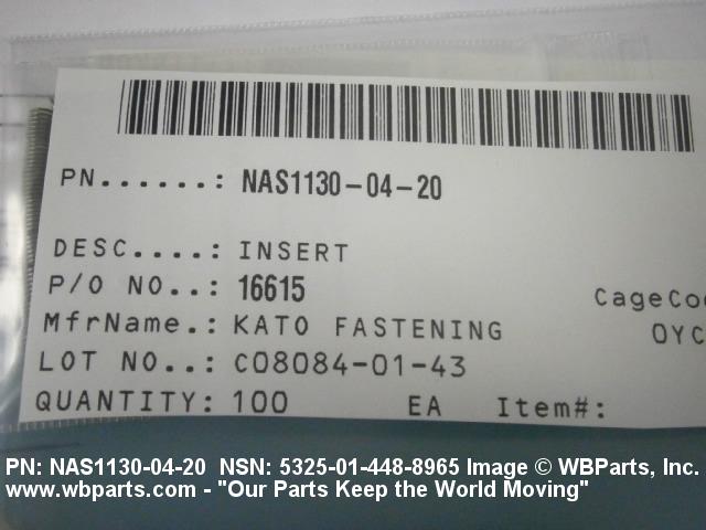 | NAS1130-04-20 | 80205 | NATIONAL AEROSPACE STANDARDS COMMITTEE AEROSPACE INDUSTRIES |