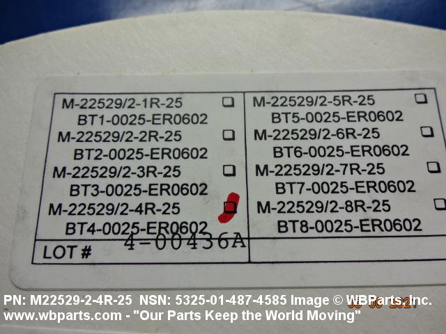 Part Alternates: M22529/2-4R-25, M2252924R25, BT40025ER0602, BT4-0025-ER0602, 5325-01-487-4585, 01-487-4585, 5325014874585, 014874585