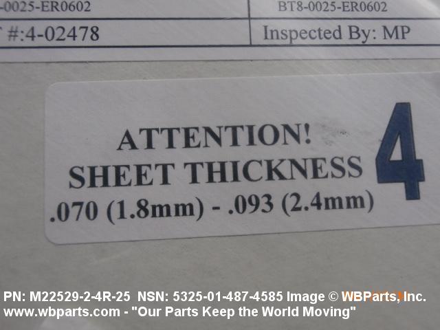 NSN 5325-01-487-4585 M22529/2-4R-25, M2252924R25, BT40025ER0602