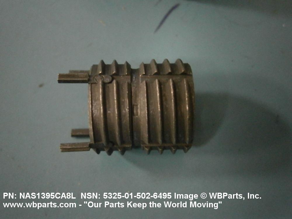 5325-01-502-6495 A cylindrical item which may have wrenching and/or driving facilities and/or shoulders. It is designed to be inserted in a drilled, tapped or a pretapped hole, or molded or pressed into soft material to reduce the size of a tapped hole; to provide threads; to add strength, and/or to prevent stripping. It is one of the following: (1) a one-piece, flanged or unflanged, internally threaded item which may have external threads, and/or serrations around the periphery of the collar, designed to engage a serrated lock ring which is not included with the item; (2) a one-piece precision coiled wire; (3) a two-piece item consisting of an internally threaded cylinder and a mating externally threaded part; or (4) a one-piece internally threaded item whose outside diameter is tapered and/or knurled and/or with fin(s). The internal thread of the item may have a locking feature. Excludes items having a sleeve on on its under portion which can be clinched or crimped. Excludes BUSHING,MACHINE THREAD; NUT,PLAIN,KNURLED; NUT,PLAIN,ROUND; NUT,PLAIN,CLINCH and NUT,SELF-LOCKING,CLINCH. See also NUT,PLAIN,PLATE