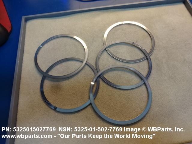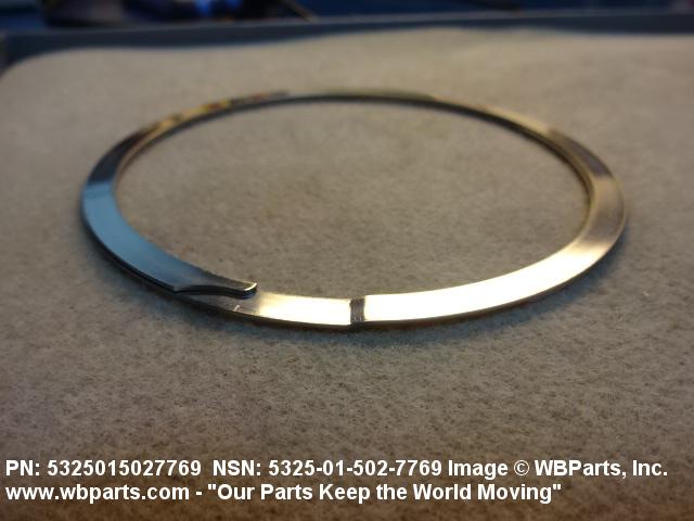 5325-01-502-7769 A resilient metal item, circular or nearly circular, which is designed to be inserted into an internal or external groove and retained by its own spring action, or it may have external prongs or projections designed to be inserted into a hole and retained by spring action of the prongs which grip by imbedding into the material. For items having internal prongs which perform the same function, see PUSH ON NUT. It is used to keep and/or lock a part(s) in position, as a ball bearing on a shaft or in a housing. See also CLIP, RETAINING and PIN, LOCK. Excludes RING, CONNECTING, ROUND.