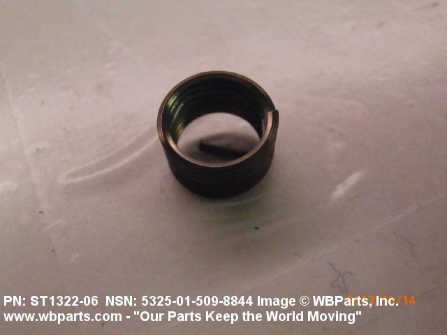 5325-01-509-8844 A cylindrical item which may have wrenching and/or driving facilities and/or shoulders. It is designed to be inserted in a drilled, tapped or a pretapped hole, or molded or pressed into soft material to reduce the size of a tapped hole; to provide threads; to add strength, and/or to prevent stripping. It is one of the following: (1) a one-piece, flanged or unflanged, internally threaded item which may have external threads, and/or serrations around the periphery of the collar, designed to engage a serrated lock ring which is not included with the item; (2) a one-piece precision coiled wire; (3) a two-piece item consisting of an internally threaded cylinder and a mating externally threaded part; or (4) a one-piece internally threaded item whose outside diameter is tapered and/or knurled and/or with fin(s). The internal thread of the item may have a locking feature. Excludes items having a sleeve on on its under portion which can be clinched or crimped. Excludes BUSHING,MACHINE THREAD; NUT,PLAIN,KNURLED; NUT,PLAIN,ROUND; NUT,PLAIN,CLINCH and NUT,SELF-LOCKING,CLINCH. See also NUT,PLAIN,PLATE