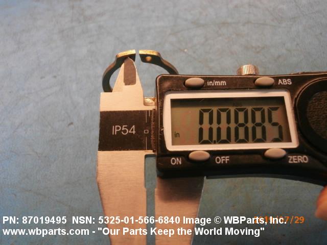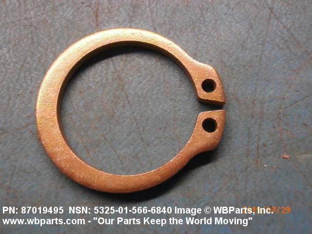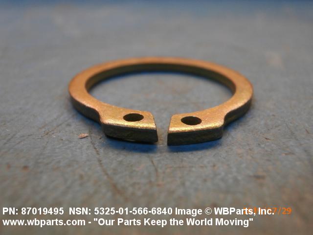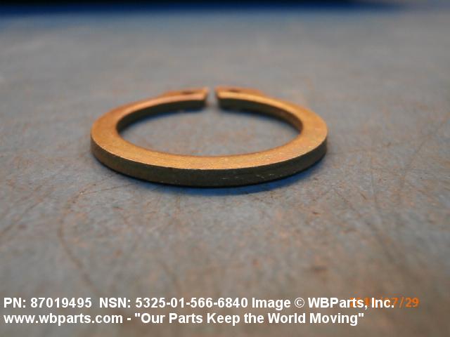 5325-01-566-6840 A resilient metal item, circular or nearly circular, which is designed to be inserted into an internal or external groove and retained by its own spring action, or it may have external prongs or projections designed to be inserted into a hole and retained by spring action of the prongs which grip by imbedding into the material. For items having internal prongs which perform the same function, see PUSH ON NUT. It is used to keep and/or lock a part(s) in position, as a ball bearing on a shaft or in a housing. See also CLIP, RETAINING and PIN, LOCK. Excludes RING, CONNECTING, ROUND.