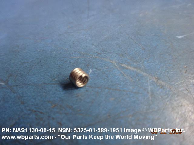 5325-01-589-1951 A cylindrical item which may have wrenching and/or driving facilities and/or shoulders. It is designed to be inserted in a drilled, tapped or a pretapped hole, or molded or pressed into soft material to reduce the size of a tapped hole; to provide threads; to add strength, and/or to prevent stripping. It is one of the following: (1) a one-piece, flanged or unflanged, internally threaded item which may have external threads, and/or serrations around the periphery of the collar, designed to engage a serrated lock ring which is not included with the item; (2) a one-piece precision coiled wire; (3) a two-piece item consisting of an internally threaded cylinder and a mating externally threaded part; or (4) a one-piece internally threaded item whose outside diameter is tapered and/or knurled and/or with fin(s). The internal thread of the item may have a locking feature. Excludes items having a sleeve on on its under portion which can be clinched or crimped. Excludes BUSHING,MACHINE THREAD; NUT,PLAIN,KNURLED; NUT,PLAIN,ROUND; NUT,PLAIN,CLINCH and NUT,SELF-LOCKING,CLINCH. See also NUT,PLAIN,PLATE
