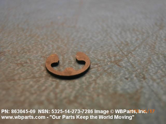 5325-14-273-7286 A resilient metal item, circular or nearly circular, which is designed to be inserted into an internal or external groove and retained by its own spring action, or it may have external prongs or projections designed to be inserted into a hole and retained by spring action of the prongs which grip by imbedding into the material. For items having internal prongs which perform the same function, see PUSH ON NUT. It is used to keep and/or lock a part(s) in position, as a ball bearing on a shaft or in a housing. See also CLIP, RETAINING and PIN, LOCK. Excludes RING, CONNECTING, ROUND.