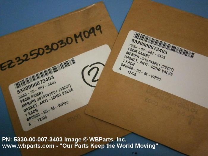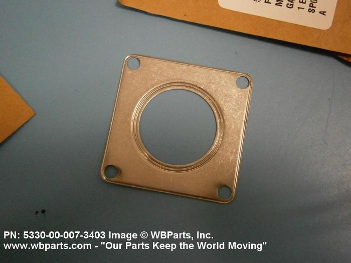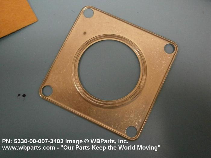 5330-00-007-3403 A deformable material which prevents the passage of matter through the joint formed when two faces are joined. It may be metallic or nonmetallic, lubricated or impregnated, solid or hollow cross section. It may be made to any predetermined dimension and shape. Excludes flat disks, items made of felt material and items having joints. For round metal and plastic items with an aperture and a solid rectangular cross section, see WASHER, FLAT; SHIM; BEARING, WASHER, THRUST; and SPACER RING. Excludes DISK, VALVE; SEAL, NONMETALLIC ANGLE; SEAL, NONMETALLIC CHANNEL; SEAL, NONMETALLIC SPECIAL SHAPED SECTION; SHIELDING GASKET, ELECTRONIC; and RING, SEALING JAR.