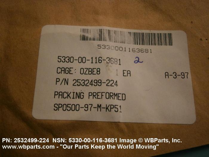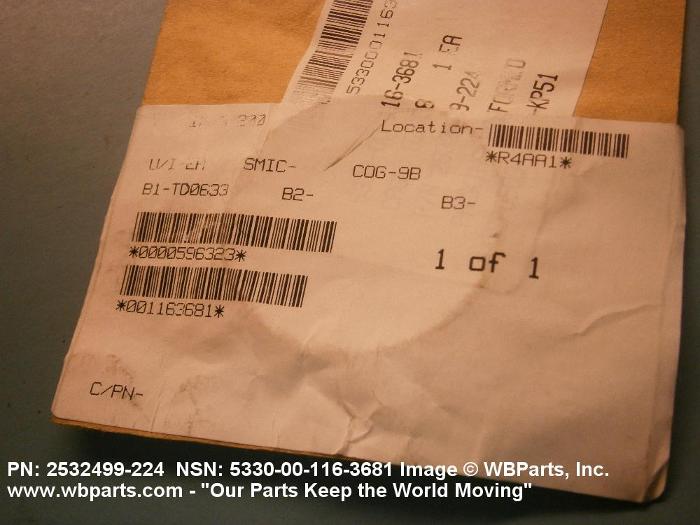 Part Alternates: BUWEPSDWG253249 9 224, BUWEPSDWG2532499224, 2532499224, 2532499-224, 5330-00-116-3681, 00-116-3681, 5330001163681, 001163681