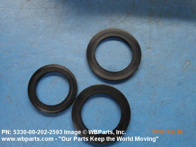 5330-00-202-2593 Any combination of items manufactured from PACKING MATERIAL to predetermined dimensions, or any combination of nonmetallic molded or formed shapes (other than solid rubber or synthetic rubber rings having a square or rectangular cross section) specifically designed and manufactured for use as a seal. The assembly may include metal lantern rings, metal separators, and/or end or adapter rings.