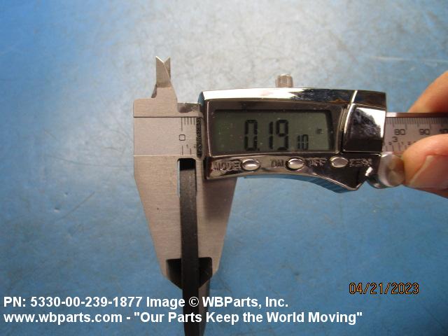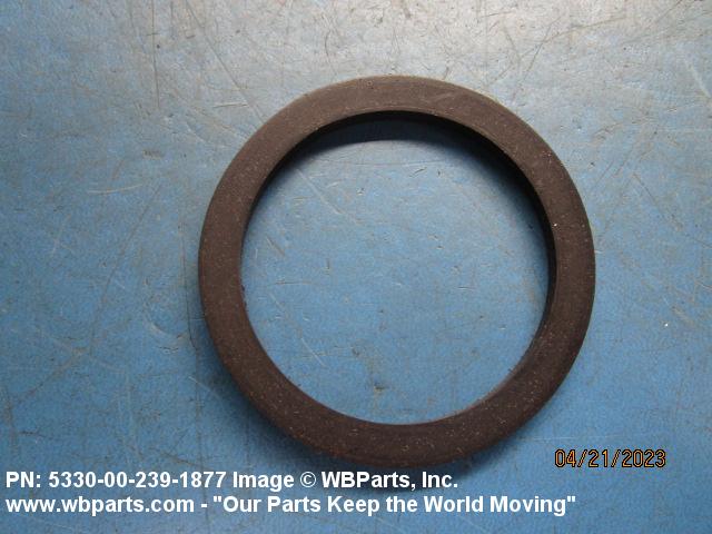 5330-00-239-1877 A deformable material which prevents the passage of matter through the joint formed when two faces are joined. It may be metallic or nonmetallic, lubricated or impregnated, solid or hollow cross section. It may be made to any predetermined dimension and shape. Excludes flat disks, items made of felt material and items having joints. For round metal and plastic items with an aperture and a solid rectangular cross section, see WASHER, FLAT; SHIM; BEARING, WASHER, THRUST; and SPACER RING. Excludes DISK, VALVE; SEAL, NONMETALLIC ANGLE; SEAL, NONMETALLIC CHANNEL; SEAL, NONMETALLIC SPECIAL SHAPED SECTION; SHIELDING GASKET, ELECTRONIC; and RING, SEALING JAR.