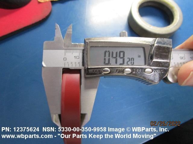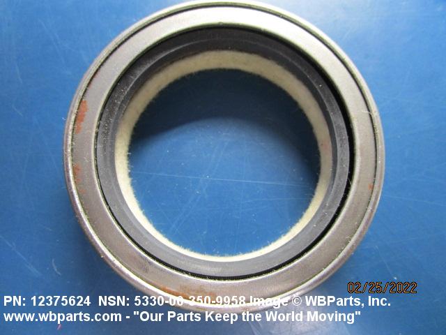 5330-00-350-9958 A pliable rubber, felt, leather, or composition ring-shaped element, split or solid; with or without spring or spreader, having a metal shell on all or a portion of at least two of the outer surfaces. It may be designed to be either bolt mounted or pressmounted between fixed and moveable parts to form a tight and effective seal by the pressure of the spring or spreader or the resiliency inherent in the element material. Excludes PACKING WITH RETAINER.