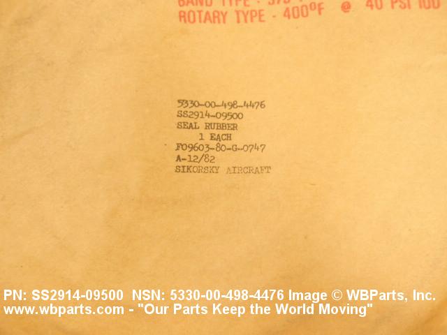 Part Alternates: SS291409500, SS2914-09500, I1030120287, I10-301-20287, 5330-00-498-4476, 00-498-4476, 5330004984476, 004984476