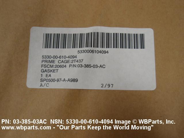 Part Alternates: 0338503AC, 03-385-03-AC, 98195, 5330-00-610-4094, 03-385-03AC, 00-610-4094, 5330006104094, 006104094