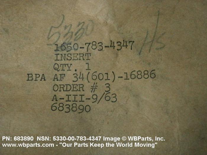 Part Alternates: 683890, 5330-00-783-4347, 00-783-4347, 5330007834347, 007834347