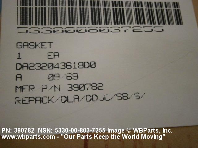Part Alternates: 390782, 5330-00-803-7255, 00-803-7255, 5330008037255, 008037255