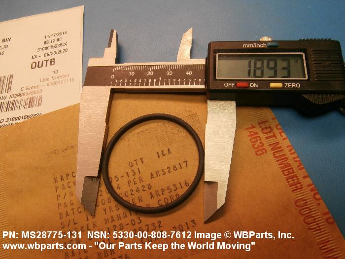 Part Alternates: MS28775131, MS28775-131 , M83248/2-146 , M832482146, AS568A-131MILP2 5732 , AS568A131MILP25732, ASC1391100, H456A, H4-56A, PRP568131406770, PRP568-131-4067-70 , V1D10197PC19 , 10163333, 1404022, 18256, 1825-6, 2-131 N304-75 , 2131N30475, 2533405131, 2533405-131 , 3112, 311-2 , 44001711310, 4400171-1310 , 5330-00-808-7611, 00-808-7611, 5330008087612, 5330008087611, 008087611