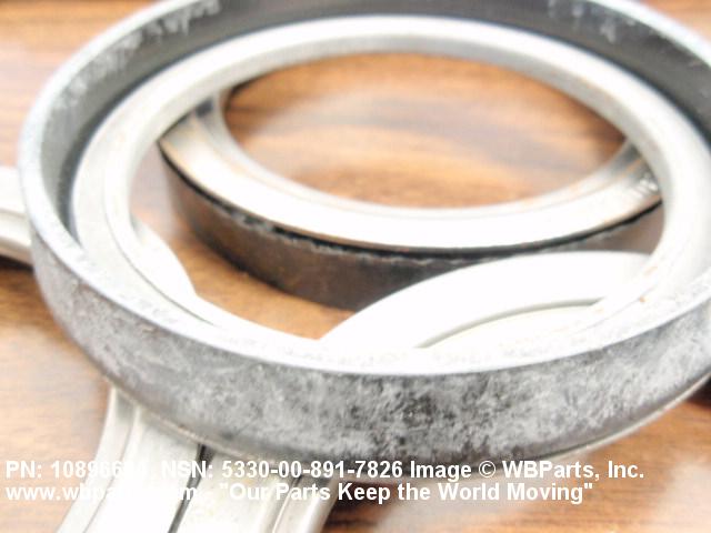 5330-00-891-7826 A pliable rubber, felt, leather, or composition ring-shaped element, split or solid; with or without spring or spreader, having a metal shell on all or a portion of at least two of the outer surfaces. It may be designed to be either bolt mounted or pressmounted between fixed and moveable parts to form a tight and effective seal by the pressure of the spring or spreader or the resiliency inherent in the element material. Excludes PACKING WITH RETAINER.