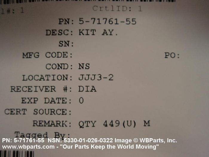 NSN 5330-01-026-0322 57176137, 5-71761-37, 57176155