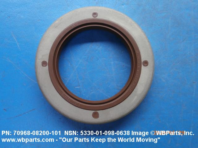 5330-01-098-0638 A pliable rubber, felt, leather, or composition ring-shaped element, split or solid; with or without spring or spreader, having a metal shell on all or a portion of at least two of the outer surfaces. It may be designed to be either bolt mounted or pressmounted between fixed and moveable parts to form a tight and effective seal by the pressure of the spring or spreader or the resiliency inherent in the element material. Excludes PACKING WITH RETAINER.