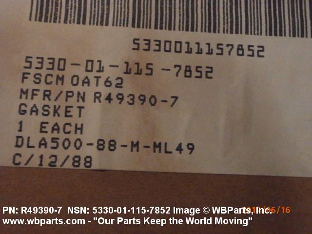 Part Alternates: R493907, R49390-7, 5330-01-115-7852, 01-115-7852, 5330011157852, 011157852