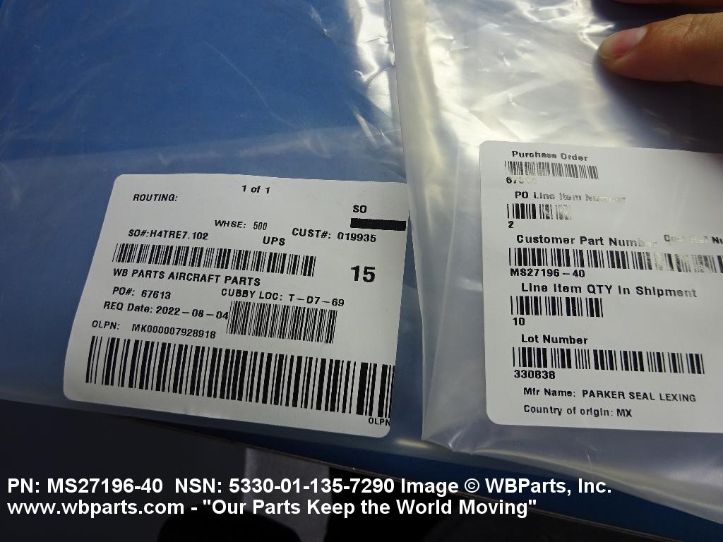 Part Alternates: MS2719640, MS27196-40, 5330-01-135-7290, 01-135-7290, 5330011357290, 011357290