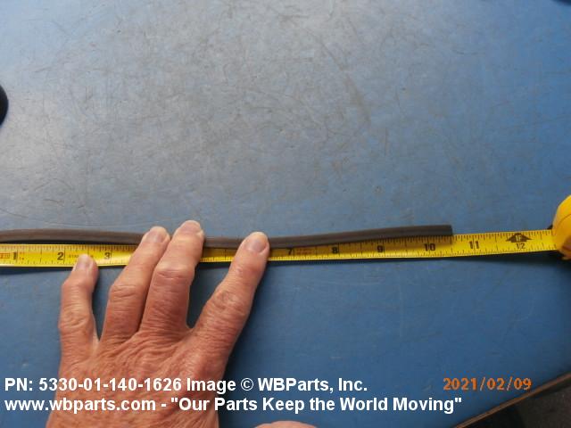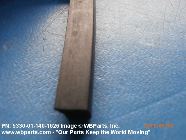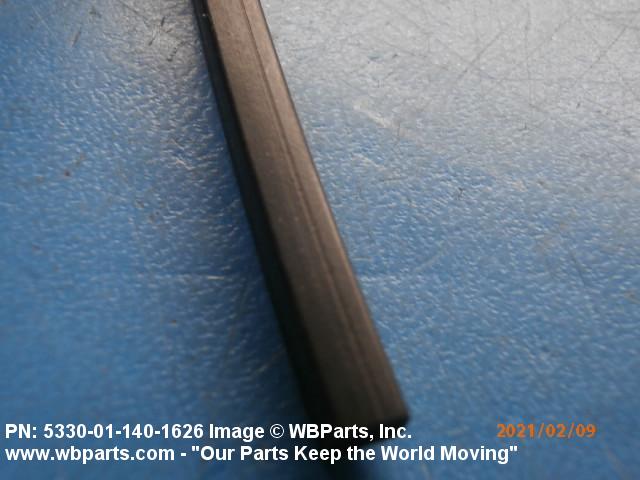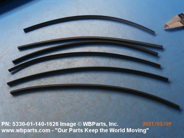 5330-01-140-1626 An elastic material of compact (solid) or cellular structure having smooth, crepe or porous surface(s) and having an oval, parallelogram, square, rectangular or D-shaped cross section. It is produced in various thicknesses. Strips are limited to widths of 6 inches (152.4mm) or less. It may or may not have a nonrubber backing or a wire cloth or cord insert. For items having a round cross section, see RUBBER ROUND SECTION. Excludes RUBBER SHEET, INNER TUBE REPAIR. See also NONMETALLIC ANGLE; NONMETALLIC CHANNEL; NONMETALLIC SPECIAL SHAPED SECTION.20253300028Packing and Gasket Materials93200027Rubber Fabricated Materials