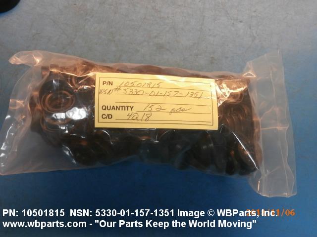 5330-01-157-1351 A pliable rubber, felt, leather, or composition ring-shaped element, split or solid; with or without spring or spreader, having a metal shell on all or a portion of at least two of the outer surfaces. It may be designed to be either bolt mounted or pressmounted between fixed and moveable parts to form a tight and effective seal by the pressure of the spring or spreader or the resiliency inherent in the element material. Excludes PACKING WITH RETAINER.