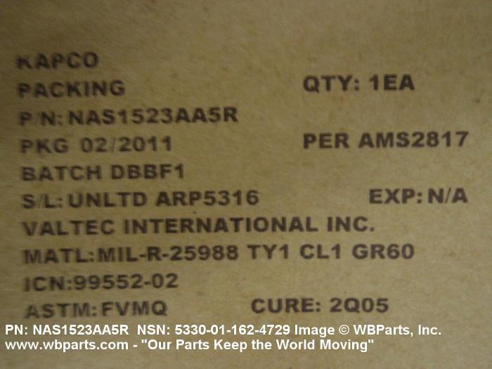 NSN 5330-01-162-4729 NAS1523AA5R, 01-162-4729, 011624729