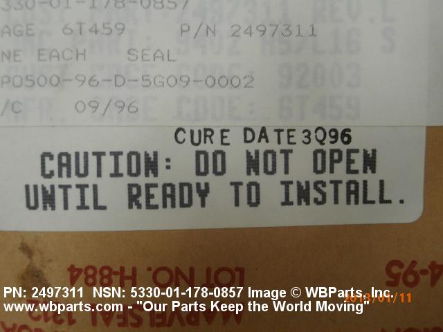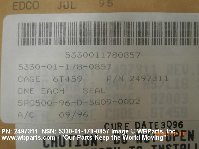 Part Alternates: 2497311, 5330-01-178-0857, 01-178-0857, 5330011780857, 011780857