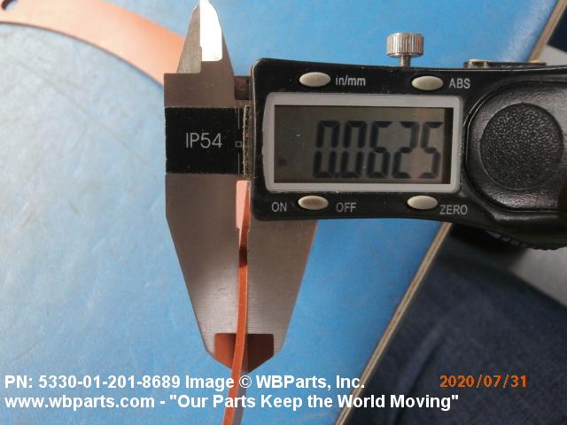 5330-01-201-8689 A deformable material which prevents the passage of matter through the joint formed when two faces are joined. It may be metallic or nonmetallic, lubricated or impregnated, solid or hollow cross section. It may be made to any predetermined dimension and shape. Excludes flat disks, items made of felt material and items having joints. For round metal and plastic items with an aperture and a solid rectangular cross section, see WASHER, FLAT; SHIM; BEARING, WASHER, THRUST; and SPACER RING. Excludes DISK, VALVE; SEAL, NONMETALLIC ANGLE; SEAL, NONMETALLIC CHANNEL; SEAL, NONMETALLIC SPECIAL SHAPED SECTION; SHIELDING GASKET, ELECTRONIC; and RING, SEALING JAR.