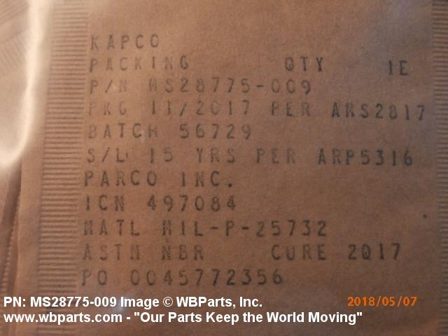 | MS28775-009 | 81343 | SOCIETY OF AUTOMOTIVE ENGINEERS INC |