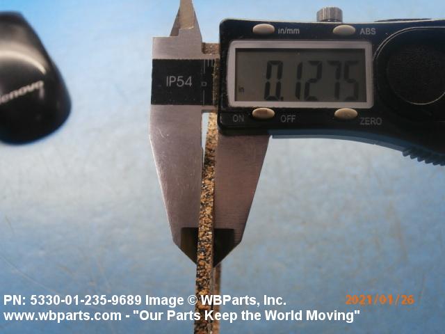 5330-01-235-9689 A deformable material which prevents the passage of matter through the joint formed when two faces are joined. It may be metallic or nonmetallic, lubricated or impregnated, solid or hollow cross section. It may be made to any predetermined dimension and shape. Excludes flat disks, items made of felt material and items having joints. For round metal and plastic items with an aperture and a solid rectangular cross section, see WASHER, FLAT; SHIM; BEARING, WASHER, THRUST; and SPACER RING. Excludes DISK, VALVE; SEAL, NONMETALLIC ANGLE; SEAL, NONMETALLIC CHANNEL; SEAL, NONMETALLIC SPECIAL SHAPED SECTION; SHIELDING GASKET, ELECTRONIC; and RING, SEALING JAR.