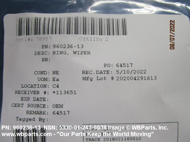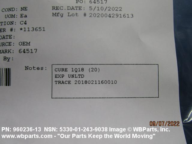 Part Alternates: TF00513, TF005-13, 96023613, 960236-13, 5330-01-243-9038, 01-243-9038, 5330012439038, 012439038