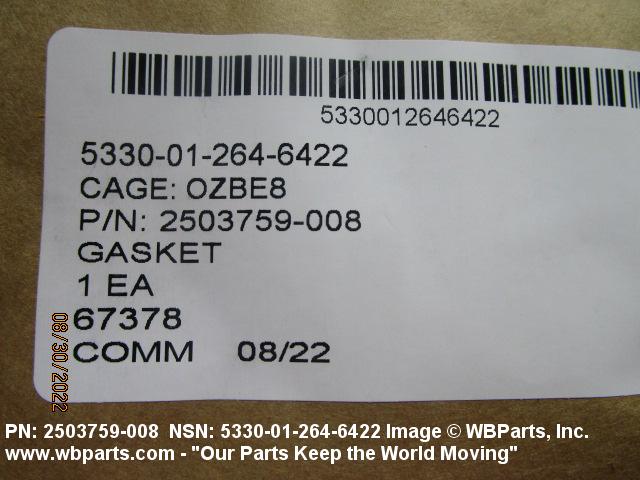 Part Alternates: 2503759008, 2503759-008, 5330-01-264-6422, 01-264-6422, 5330012646422, 012646422