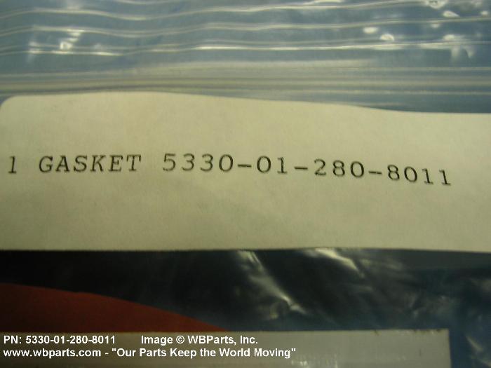 5330-01-280-8011 A deformable material which prevents the passage of matter through the joint formed when two faces are joined. It may be metallic or nonmetallic, lubricated or impregnated, solid or hollow cross section. It may be made to any predetermined dimension and shape. Excludes flat disks, items made of felt material and items having joints. For round metal and plastic items with an aperture and a solid rectangular cross section, see WASHER, FLAT; SHIM; BEARING, WASHER, THRUST; and SPACER RING. Excludes DISK, VALVE; SEAL, NONMETALLIC ANGLE; SEAL, NONMETALLIC CHANNEL; SEAL, NONMETALLIC SPECIAL SHAPED SECTION; SHIELDING GASKET, ELECTRONIC; and RING, SEALING JAR.