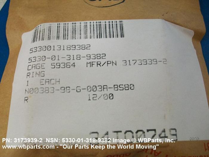 Part Alternates: 31739392, 3173939-2, 5330-01-318-9382, 01-318-9382, 5330013189382, 013189382