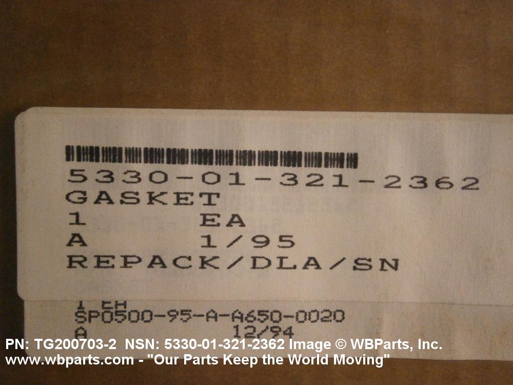 Part Alternates: TG2007032, TG200703-2, 5330-01-321-2362, 01-321-2362, 5330013212362, 013212362