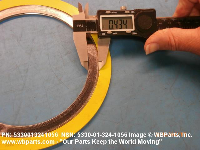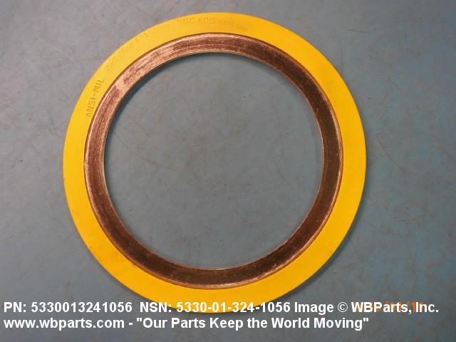 5330-01-324-1056 A circular or moderately noncircular shaped item with an aperture. It is constructed of spring-like metal strips, preformed into a vee shape, laminated with a soft filler. It is designed to seal between two nondeforming surfaces. It may have an inner and/or outer, solid or spiral wound compression ring(s).