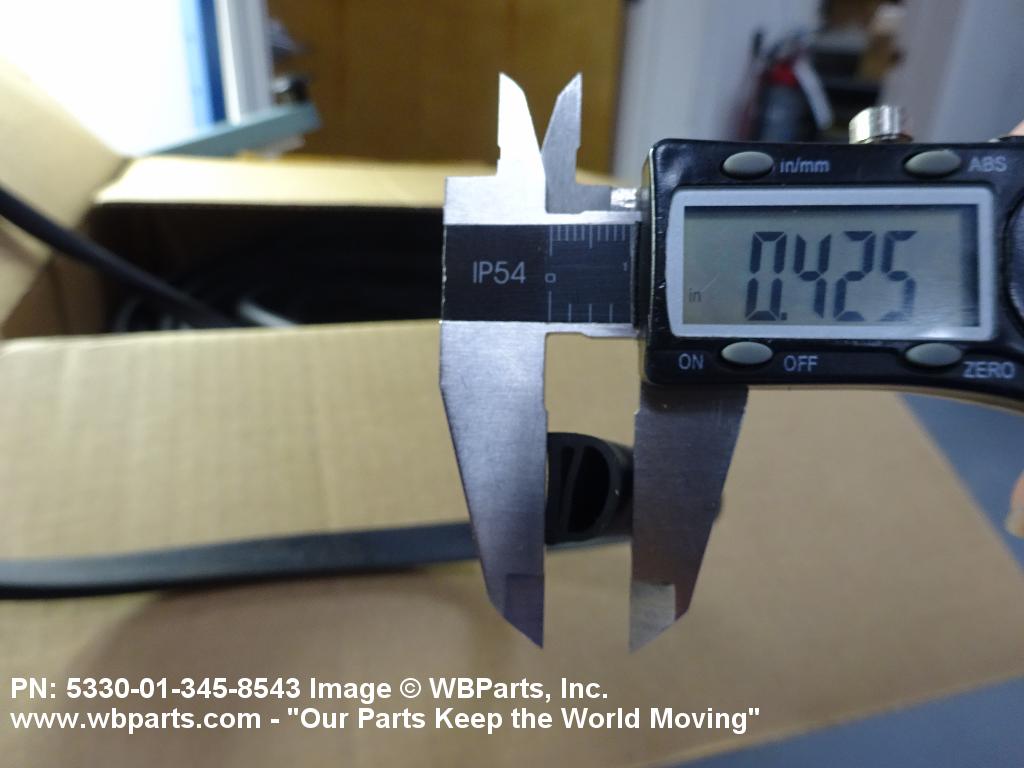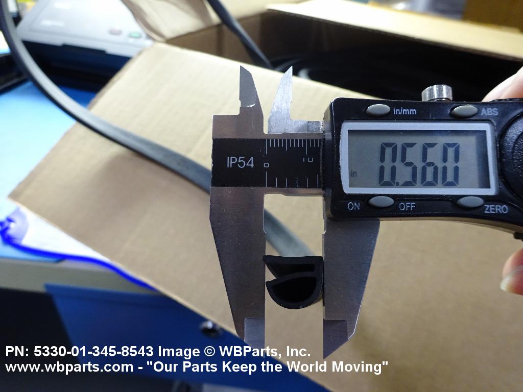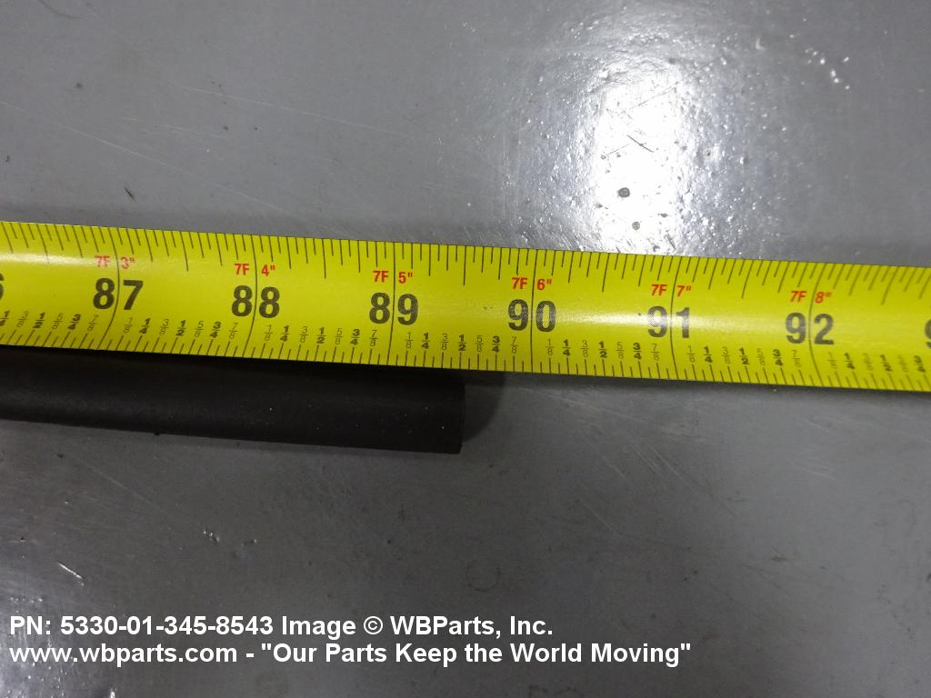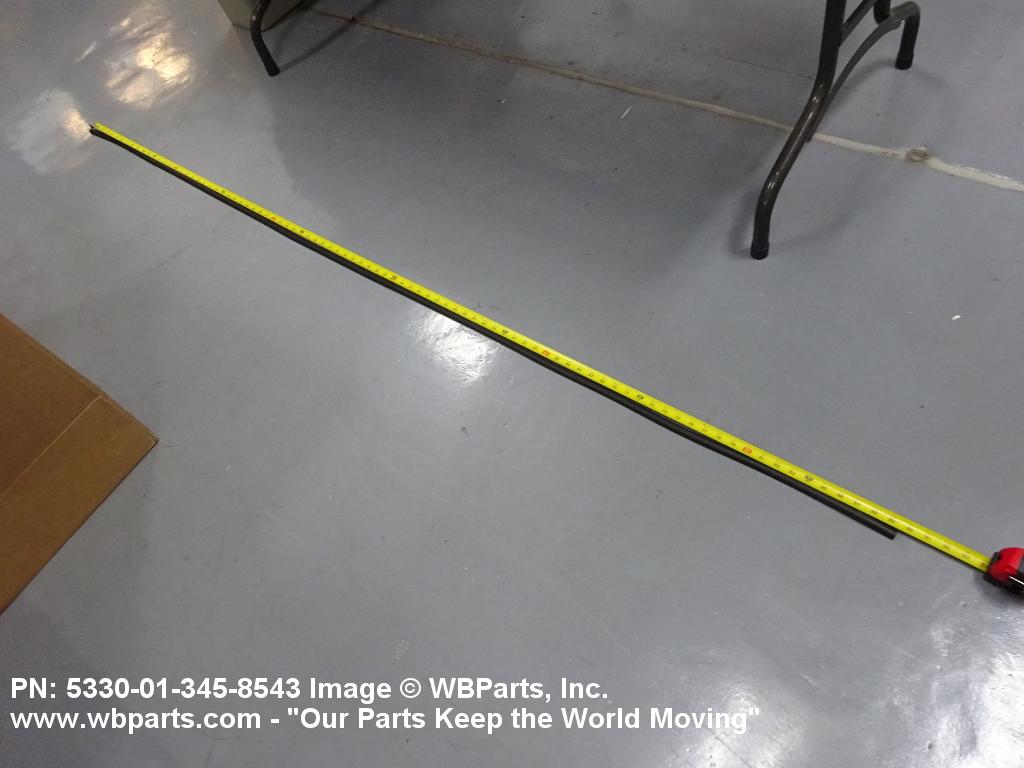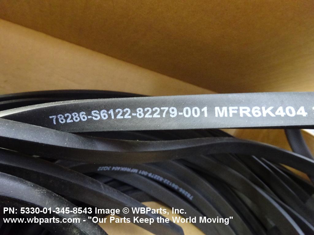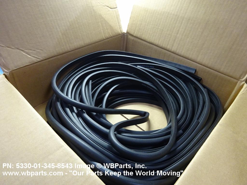 5330-01-345-8543 An item fabricated from NONMETALLIC SPECIAL SHAPED SECTION. It may be (1) formed to a specific shape with or without joints, (2) a single piece whose ends have been secured together to form a specific shape, or (3) a straight item fabricated to a specific length for a specific application with end cuts or joints. Items, except for molded corners, slot(s), press fit buttons, and the like must be of one continuous cross section. It is specifically designed for use in applications where there is no relative motion between joined parts. Excludes BUSHING, NONMETALLIC; PACKING, PERFORMED; PAD, CUSHIONING;and SEAL, PLAIN. For straight items with square end cuts and without mounting hole(s), slot(s), or press fit buttons, see NONMETALLIC SPECIAL SHAPED SECTION.