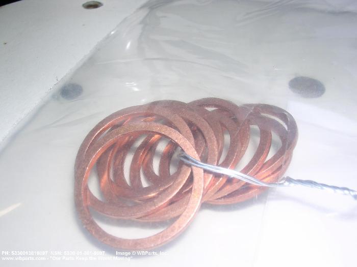 5330-01-381-9897 A deformable material which prevents the passage of matter through the joint formed when two faces are joined. It may be metallic or nonmetallic, lubricated or impregnated, solid or hollow cross section. It may be made to any predetermined dimension and shape. Excludes flat disks, items made of felt material and items having joints. For round metal and plastic items with an aperture and a solid rectangular cross section, see WASHER, FLAT; SHIM; BEARING, WASHER, THRUST; and SPACER RING. Excludes DISK, VALVE; SEAL, NONMETALLIC ANGLE; SEAL, NONMETALLIC CHANNEL; SEAL, NONMETALLIC SPECIAL SHAPED SECTION; SHIELDING GASKET, ELECTRONIC; and RING, SEALING JAR.
