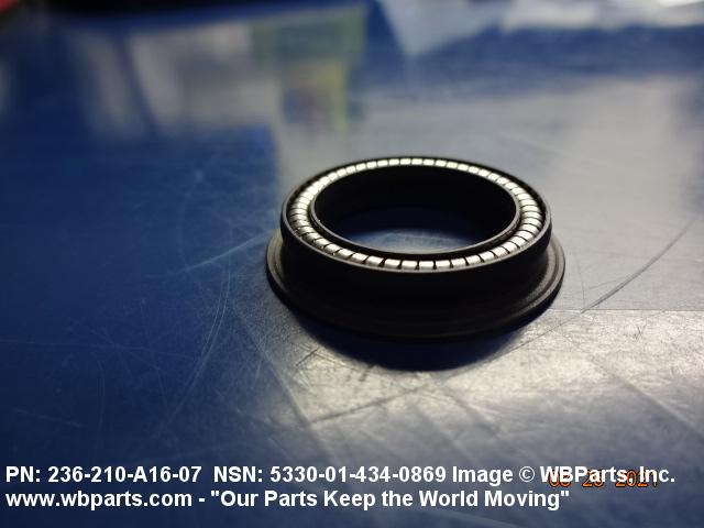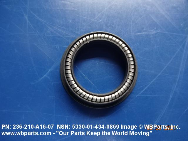 5330-01-434-0869 A pliable rubber or composition ring-shaped element, split or jointless (solid) not encased in a metal shell, but having a spring, spreader and/or molded-in reinforcement. It is designed to be pressmounted between fixed and movable or moving parts to form a tight and effective seal.
