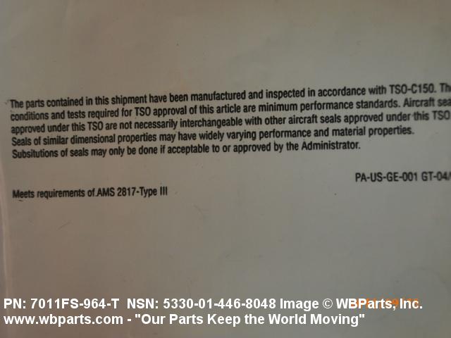 Part Alternates: 7011FS964T, 7011FS-964-T, 5330-01-446-8048, 01-446-8048, 5330014468048, 014468048