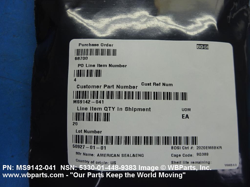 Part Alternates: MS9142041, MS9142-041, 5330-01-448-9383, 01-448-9383, 5330014489383, 014489383
