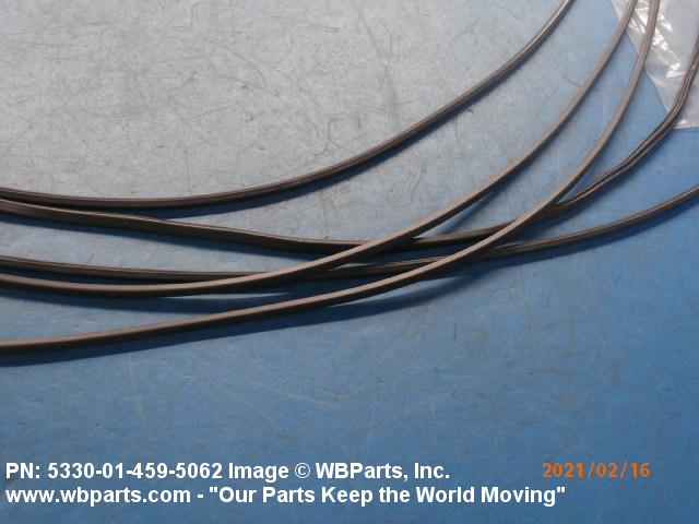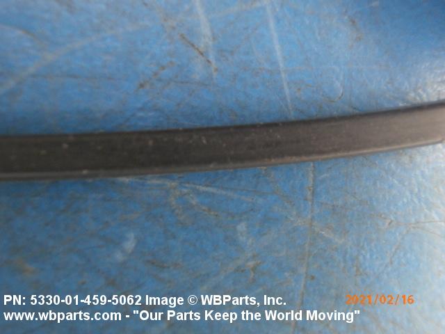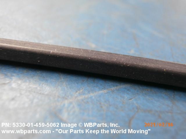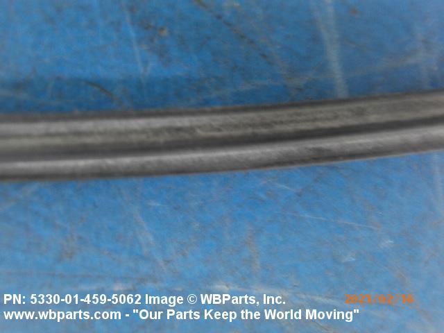 5330-01-459-5062 An item fabricated from NONMETALLIC SPECIAL SHAPED SECTION. It may be (1) formed to a specific shape with or without joints, (2) a single piece whose ends have been secured together to form a specific shape, or (3) a straight item fabricated to a specific length for a specific application with end cuts or joints. Items, except for molded corners, slot(s), press fit buttons, and the like must be of one continuous cross section. It is specifically designed for use in applications where there is no relative motion between joined parts. Excludes BUSHING, NONMETALLIC; PACKING, PERFORMED; PAD, CUSHIONING;and SEAL, PLAIN. For straight items with square end cuts and without mounting hole(s), slot(s), or press fit buttons, see NONMETALLIC SPECIAL SHAPED SECTION.