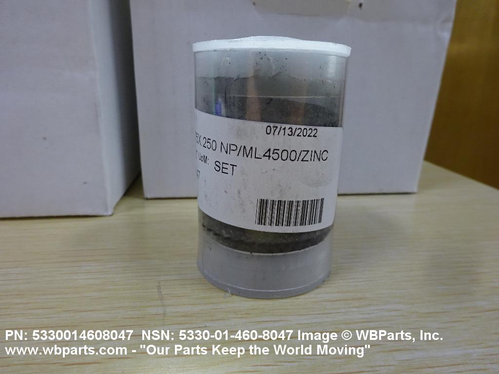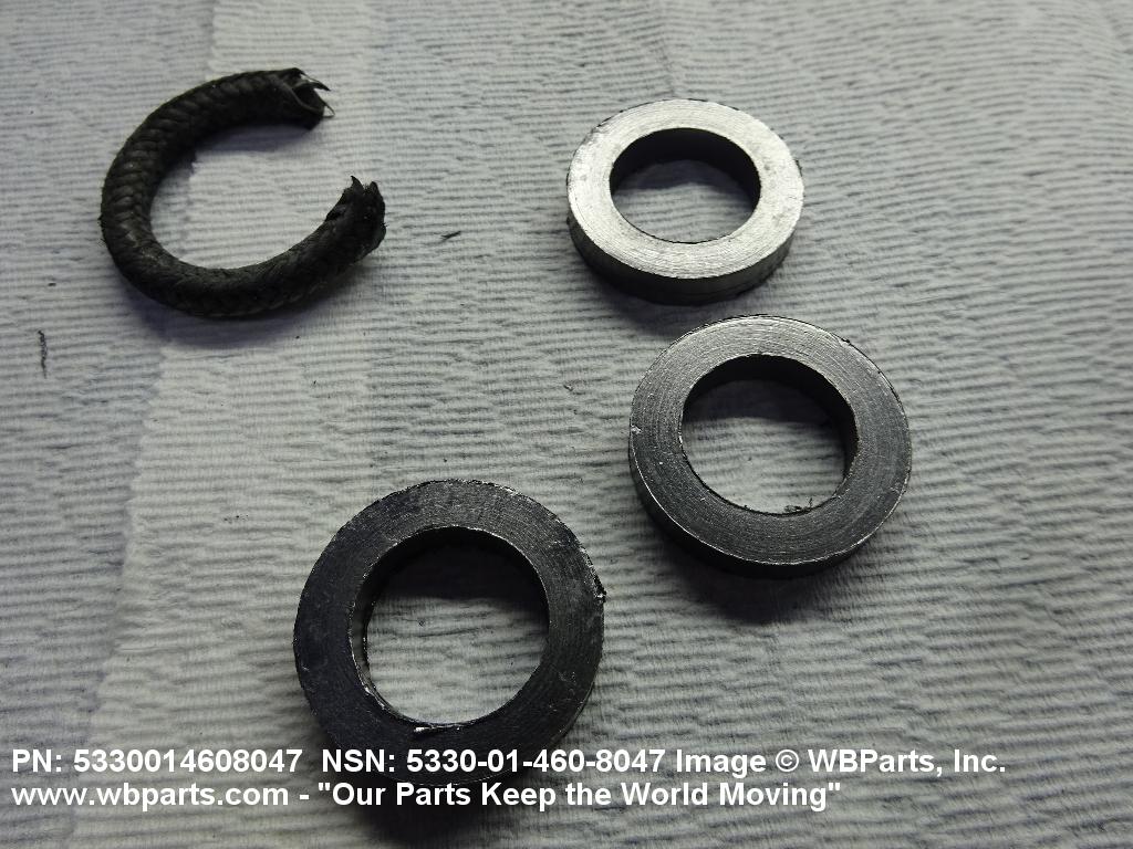 5330-01-460-8047 Any combination of items manufactured from PACKING MATERIAL to predetermined dimensions, or any combination of nonmetallic molded or formed shapes (other than solid rubber or synthetic rubber rings having a square or rectangular cross section) specifically designed and manufactured for use as a seal. The assembly may include metal lantern rings, metal separators, and/or end or adapter rings.